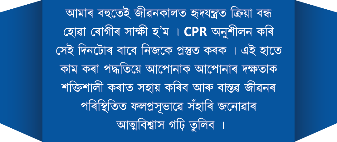 এতিয়া যেতিয়া আপুনি চিপিআৰ প্ৰশিক্ষণ সম্পূৰ্ণ কৰিলে, তেতিয়া আপোনাৰ ওচৰত হৃদযন্ত্ৰ বন্ধ হোৱা ৰোগীৰ জীৱন ৰক্ষা কৰাৰ দক্ষতা আছে।